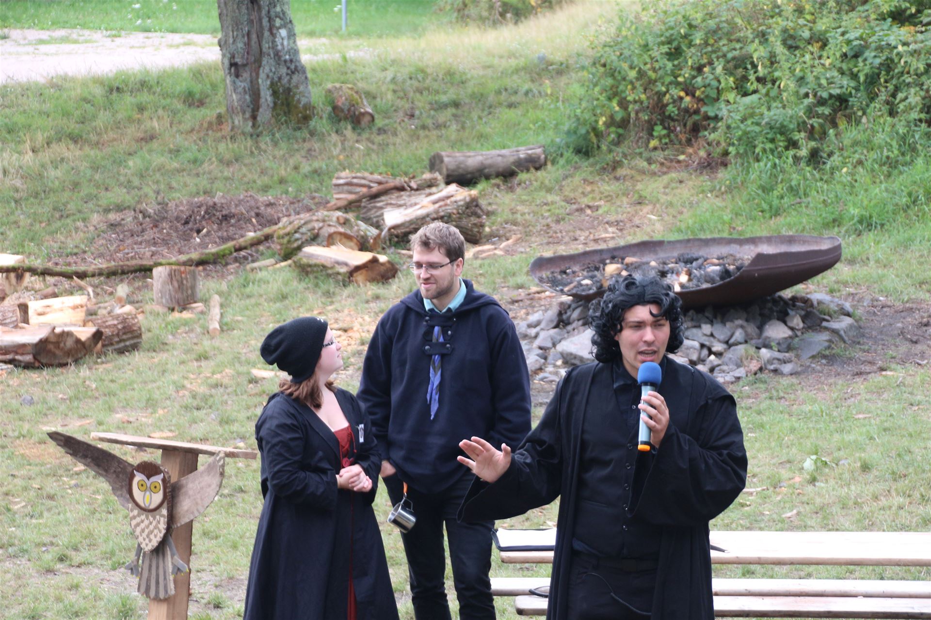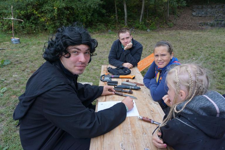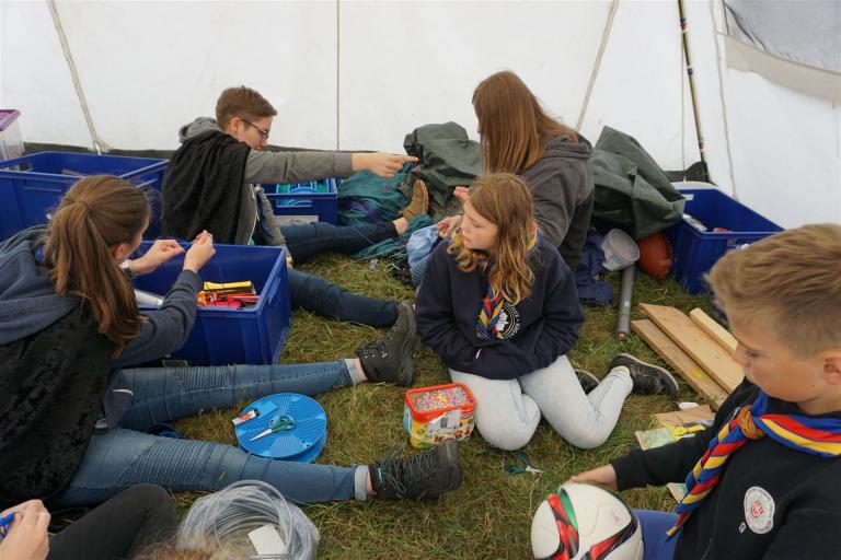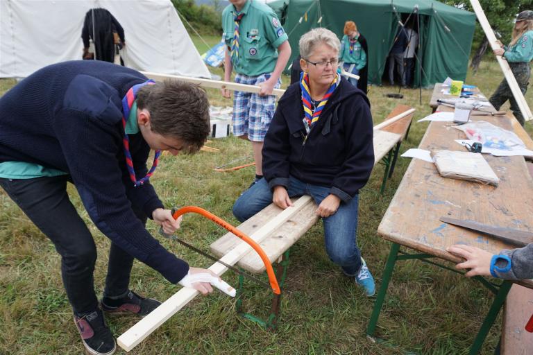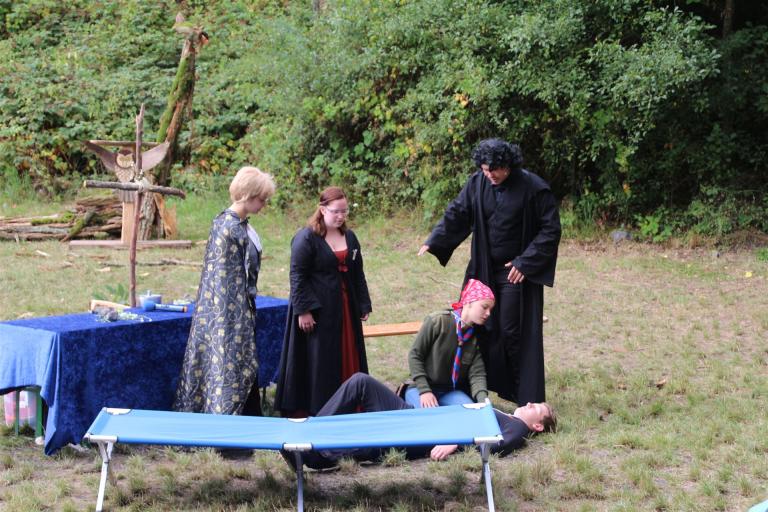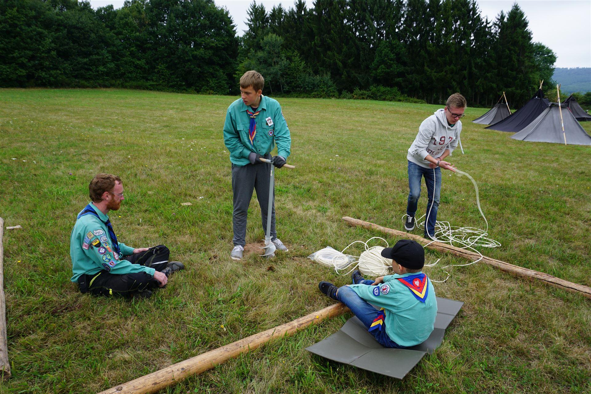 erst gab es einen Gottesdienst. Danach fanden AGs (Messerprüfung, Holzbauten, Zauberstab, Schwedenstuhl, Knoten, Gipsmasken) statt.